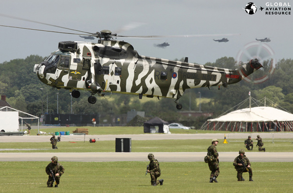 The 'Lynx Park' had service examples from the UK armed forces, France, Germany, QINETIQ's raspberry ripple schemed cab from Boscombe Down, museum pieces, record breakers and even the specially painted Mk.3, sporting a snazzy blue outfit as a reminder of the scheme worn by the type in its earlier Mk.2 guise. The Lynx, which will soon be the subject of a separate feature here on GAR to mark the anniversary, also took centre stage for the flying programme as we will see a little later.