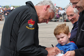 While Martin flying an excellent display wasn't especially newsworthy, alongside him for the first time for a public performance was Bill Ramsey and the joy on his face was clear to see when he stepped off the bottom rung of the ladder. He said, jokingly perhaps, that he has already signed more autographs than he did during two years as Tutor display pilot and the crowds were certainly keeping him busy at Yeovilton.