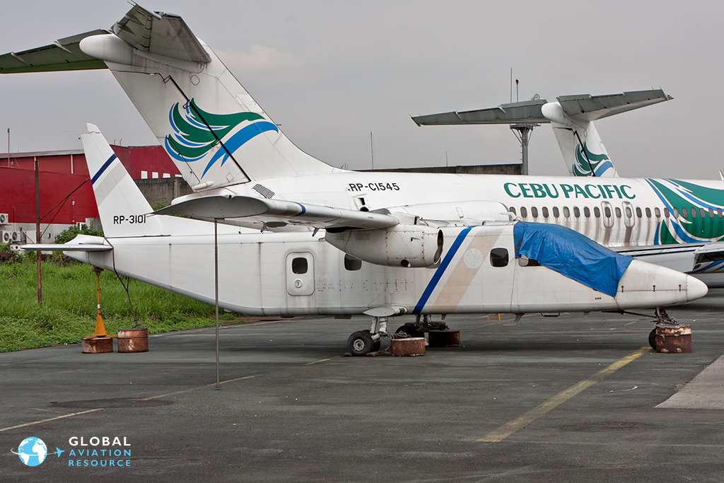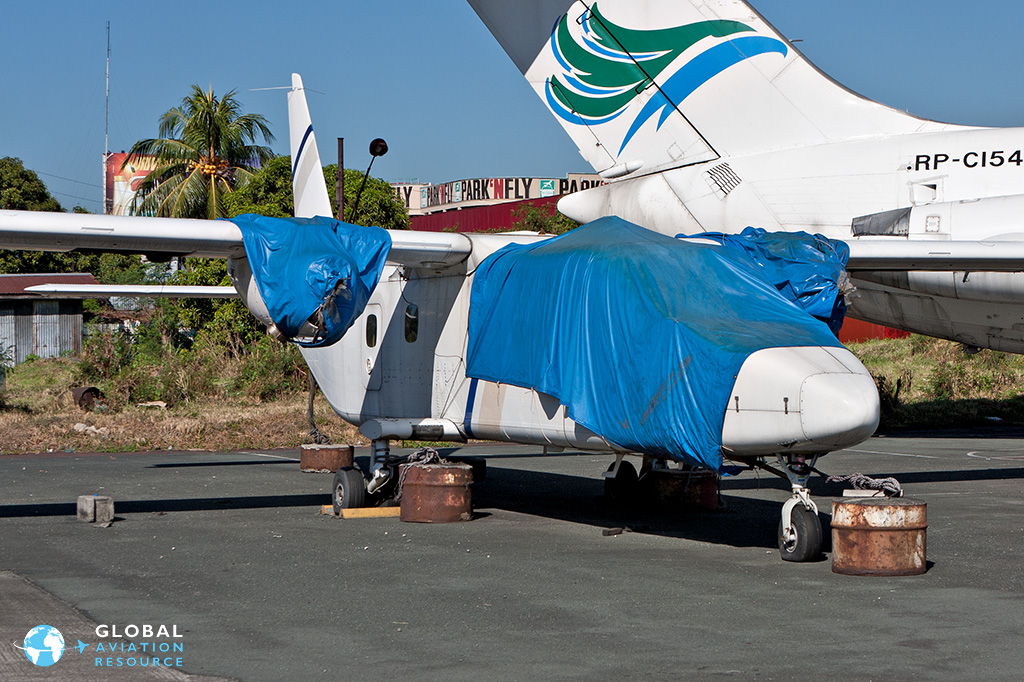 On to a couple of unusual types that can be found at this airfield. First up a SIAI-Marchetti SF-600TP Canguro (RP-3101 c/n 009) of which only 10 were built. The original prototype was bulit with Lycoming piston engines, but production models were built with Allison 250 turboprops. When SIAI-Marchetti were taken over by Augusta, a venture with Sammi in South Korea to build these aircraft plus others came to nothing, and a similar venture with he Philippines Aerospace Development Company (PADC) also come to nothing. Two examples were delivered to the Philippines with RP-C1298 (c/n 008) ditching in the sea on 1 September 1977, near to Fortune Island to the south west of Manila. Ten people were on board with one becoming a fatality. The example still extant is in very faded Philippine Coast Guard colours. The licence was later obtained by Italian company Vulcanair along with the Partenavia P.68.