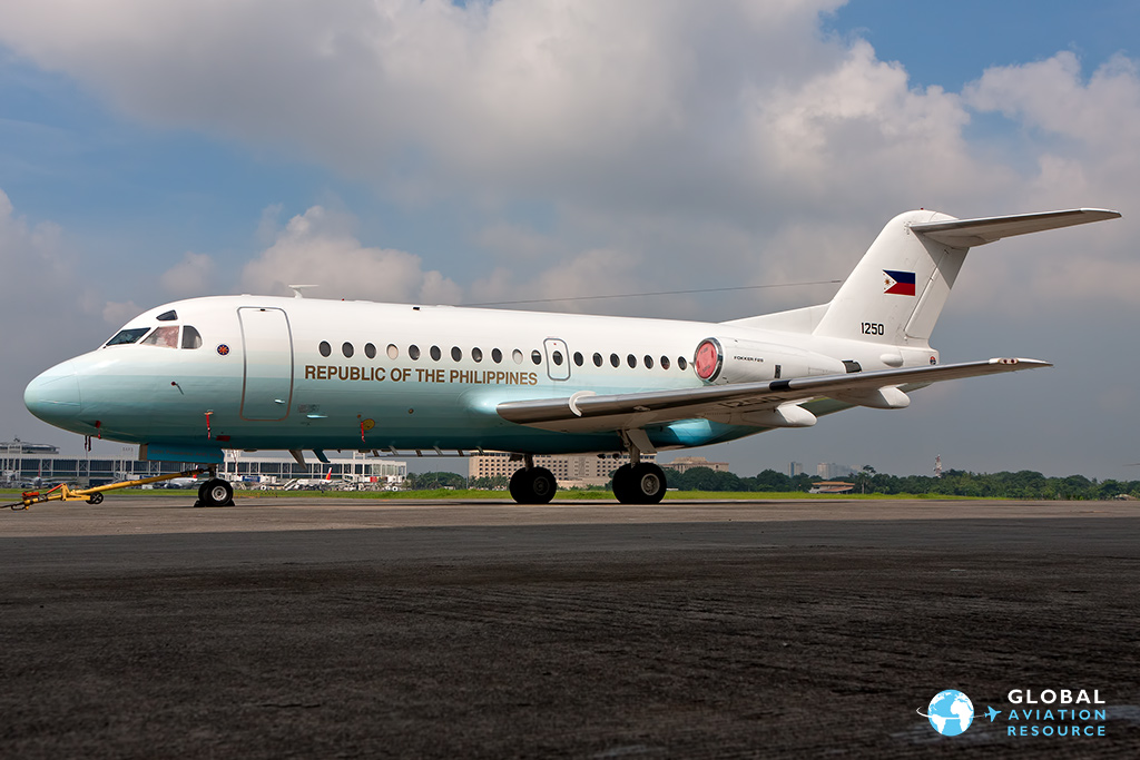 The flagship of the fleet is Fokker F-28-3000 (c/n 11153) which was built in 1979 and is currently registered as 1250. It was originally delivered as RC-C1177 in 1980 into the hands of Government Financial Institutions (GFI), before being donated to the Office of the President (as RP-1250), and was then transferred to the inventory of the Philippine Air Force in 2007 when the RP was dropped from the serial.