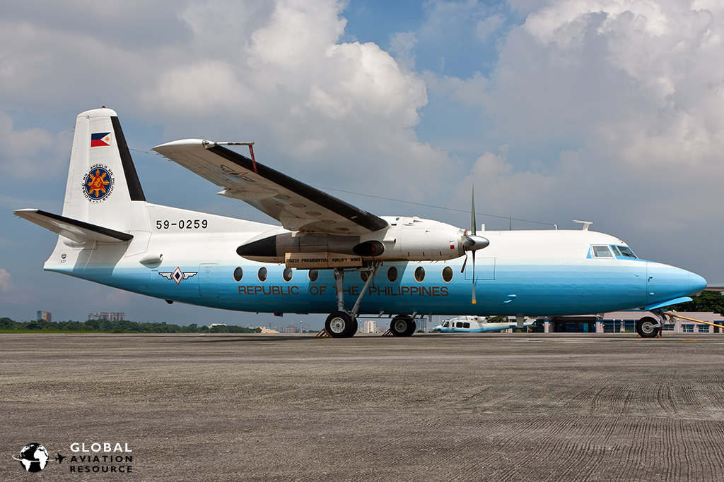The Presidential Airlift Wing also operates a single F-27-200 (59-0259 c/n 10115). This aircraft is a backup to the F-28 and also serves to fly security personnel in advance of the F-28 to secure the area of visits. Unusually this aircraft carries a full military serial as opposed to the RP that designates government aircraft.