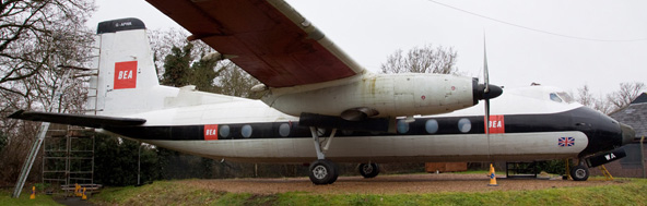 Outside resides a Handley Page Dart Herald resplendent in a British European Airways livery which visitors can enter, with the aircraft’s cabin having half of the original seats in as well as displays detailing the aircraft’s history. This particular machine was originally built at Woodley and arrived at the Museum in 1993, since then over 14,000 man hours have gone into its restoration. It was also flown by Prince Phillip on a ten country tour of South America in 1962, which a plaque celebrates. The flight deck is also on display and will soon have the windscreens replaced. The Museum also has the largest surviving section of a Miles Marathon, which is also outside.