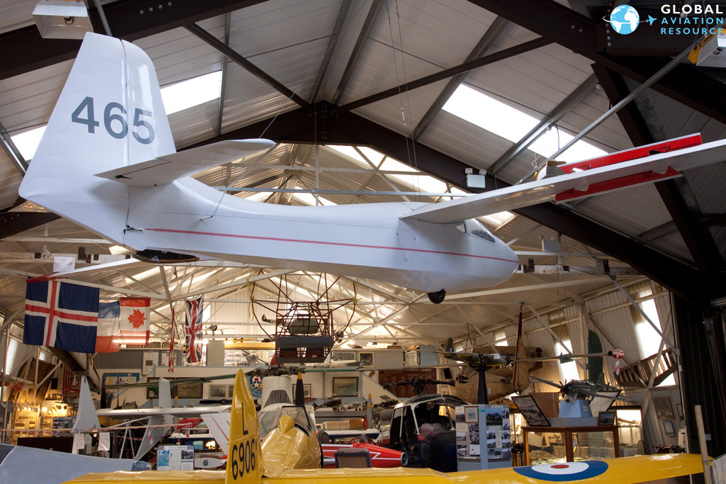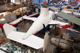 At least five gliders reside in the museum, all in various states of assembly and restoration. A pristine example of an Olympia 456 hangs from the ceiling above the main restoration area whilst just below the EON Primary Mk.1 glider has recently had the fabric on one of its wings replaced as well as a re-paint. Work on the structure of the other wing has begun along with masking for the application of the registration.