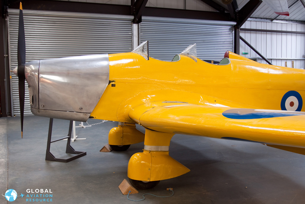 Miles built many successful aircraft and the Miles M.14 Magister was no exception. A twin seat basic trainer which first flew in 1937, by the start of the Second World War over 700 Magisters were in service with the RAF. The Museum's example, representing Magister I L6906, is actually a replica that has been built around some remaining components of an actual Magister. Despite being a replica it does faithfully represent the method of wooden construction that was originally used. The machine now has both wings attached along with the propeller and is resplendent in a smart yellow RAF training scheme.