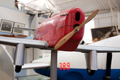 Another unique exhibit is the Miles M.100 Student, the only one of its type ever produced. This twin seat, side-by-side jet trainer was designed to be a cheaper alternative for the RAF than the Jet Provost but the type never went into production. The Student crashed at Duxford in 1989 after the engine failed just after takeoff and the airframe is now under restoration. The Student is currently also under restoration and the Museum’s engineers have now completed repairs to one of the wings, rubbing it down and re-painting it. Work has now begun on the second wing which was in a much worse condition than the first.