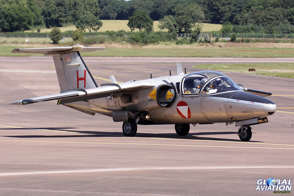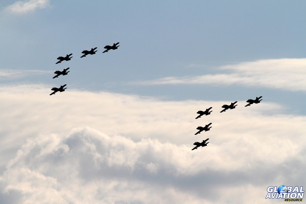 Two training types completed the fast jet line up. Austria has been a supporter of the show ever since the first event at North Weald in 1971, and continued its affiliation with a solo display by the distinctive tiger-schemed Saab J105 in a punchy routine, full of impressive vertical manoeuvres and plenty of noise that belies the jet’s diminutive size.