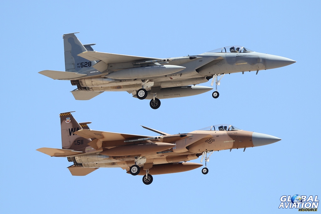 A pair of 65th AGRS F-15Cs over the Nellis ranges © Paul Filmer – globalaviationresource.com
