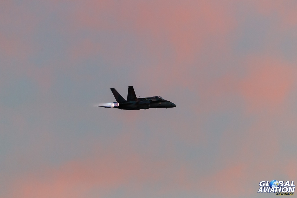 The finale for the evening was the Canadian Hornet display. Given that the CF-188 carries a colour scheme based on a Battle of Britain Hurricane, the crowd was keenly anticipating the best of the evening light. Unfortunately, the team decided to delay take-off by ten minutes to allow the sun to set.