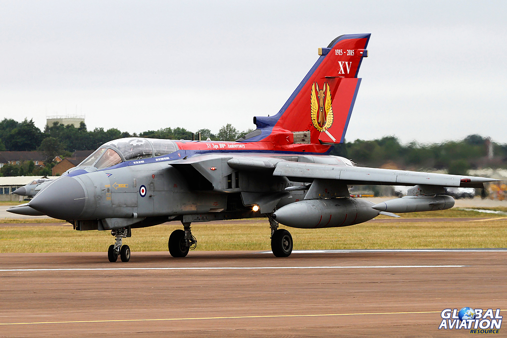 It was also superb to see so many special-schemed RAF aircraft in the static park, with an abundance of Typhoon and Tornado aircraft dotted around RAF Fairford. The latter in particular is an Air Tattoo favourite and 2015 saw a feature on the 35th anniversary of Tri-National Tornado Training Establishment (TTTE) both in the flying and static displays. In the static, three examples of the Tornado from Great Britain, Italy and Germany lined up next to each other, each with unique vinyl tail art depicting the anniversary, whilst in the flying programme, a three-ship joined together for a series of flypasts, harking back to the old Cottesmore days in the 1990s. Whilst the idea on paper was superb, the outcome was rather subdued with three flypasts from the same direction straight and level counting as the “TTTE reunion”, with lengthy gaps between each pass. Nevertheless, the sight of three Tornados together once again was a nice inclusion in a rammed flying programme, and it’s hard to complain too much given how little we see the type flying at UK airshows.