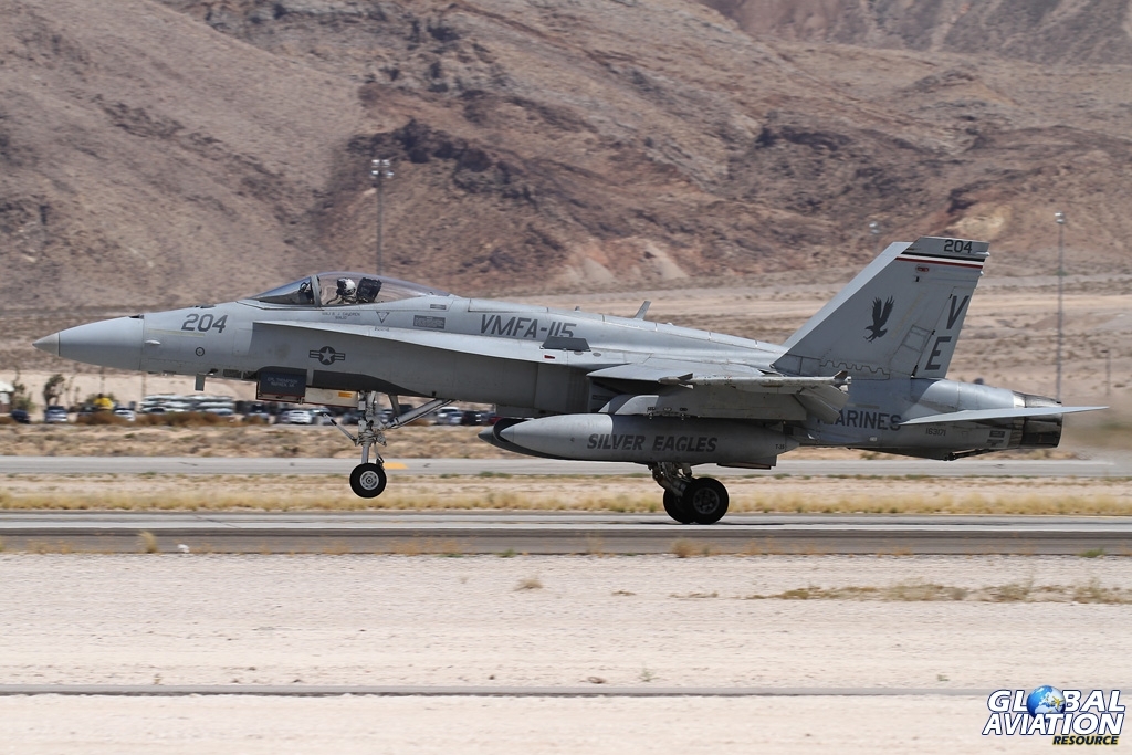 VMFA-115 ‘Silver Eagles’, Marine Air Wing 2, MCAS Beaufort, South Carolina, with seven F/A-18A++ Hornets.