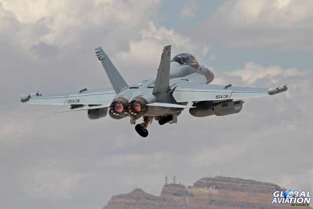 For this exercise the Red Force was augmented by aircraft from a number of the Blue Force units on a day-by-day basis, unlike 15-1 and 15-2 where one unit was dedicated to the Red Force. On the penultimate day several aircraft were observed performing the Flex departure from the northerly runways. This is a low-level departure which sees the aircraft routing around the Las Vegas Motor Speedway before departing to the north-west, and is usually performed by aircraft going to the western side of the ranges, which is where the Red Force congregate.